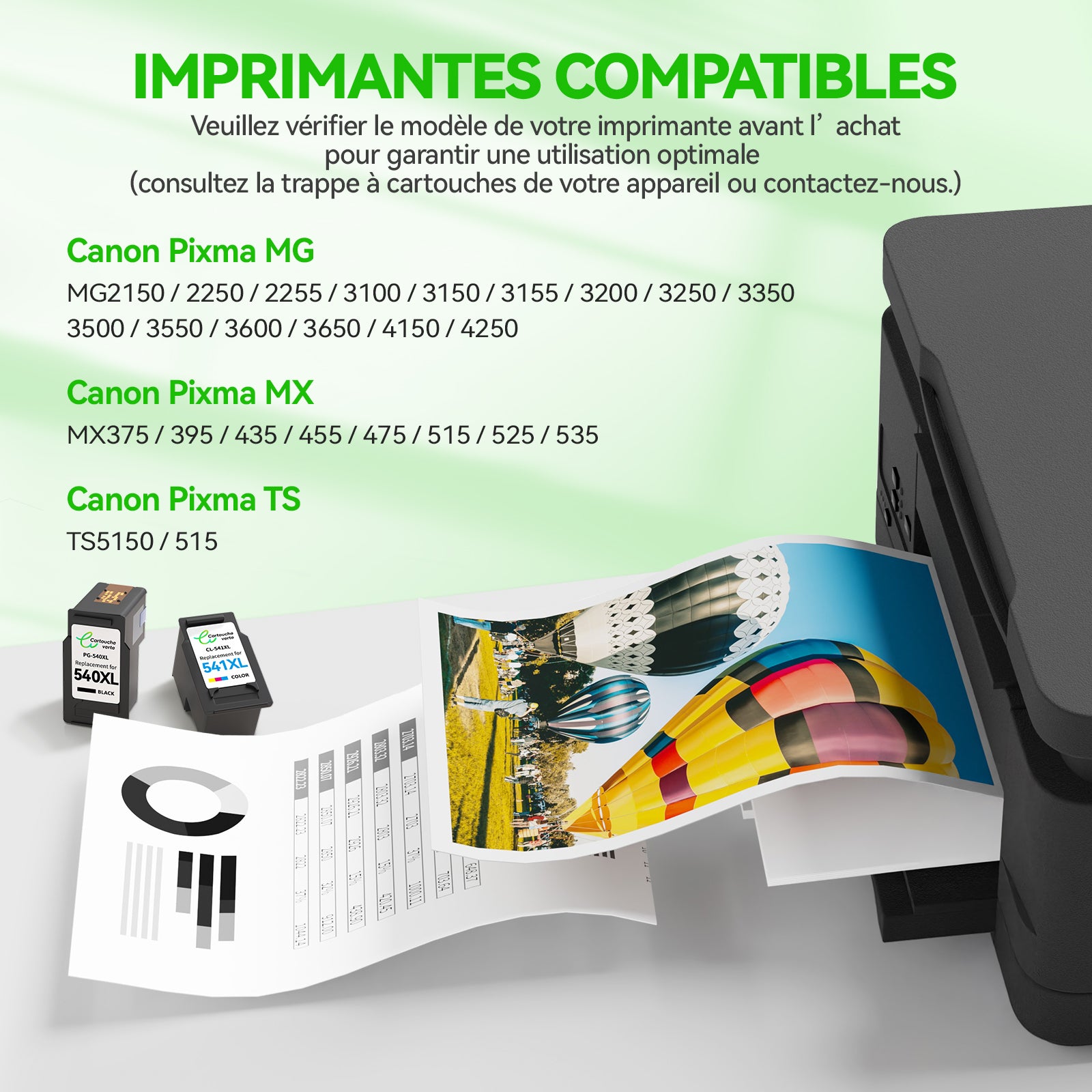 Green Cartridge is committed to offering you compatible* Canon 540/541xl ink cartridges equipped with a smart chip to guarantee perfect compatibility with your printer while allowing you to accurately track your consumption thanks to ink levels.
