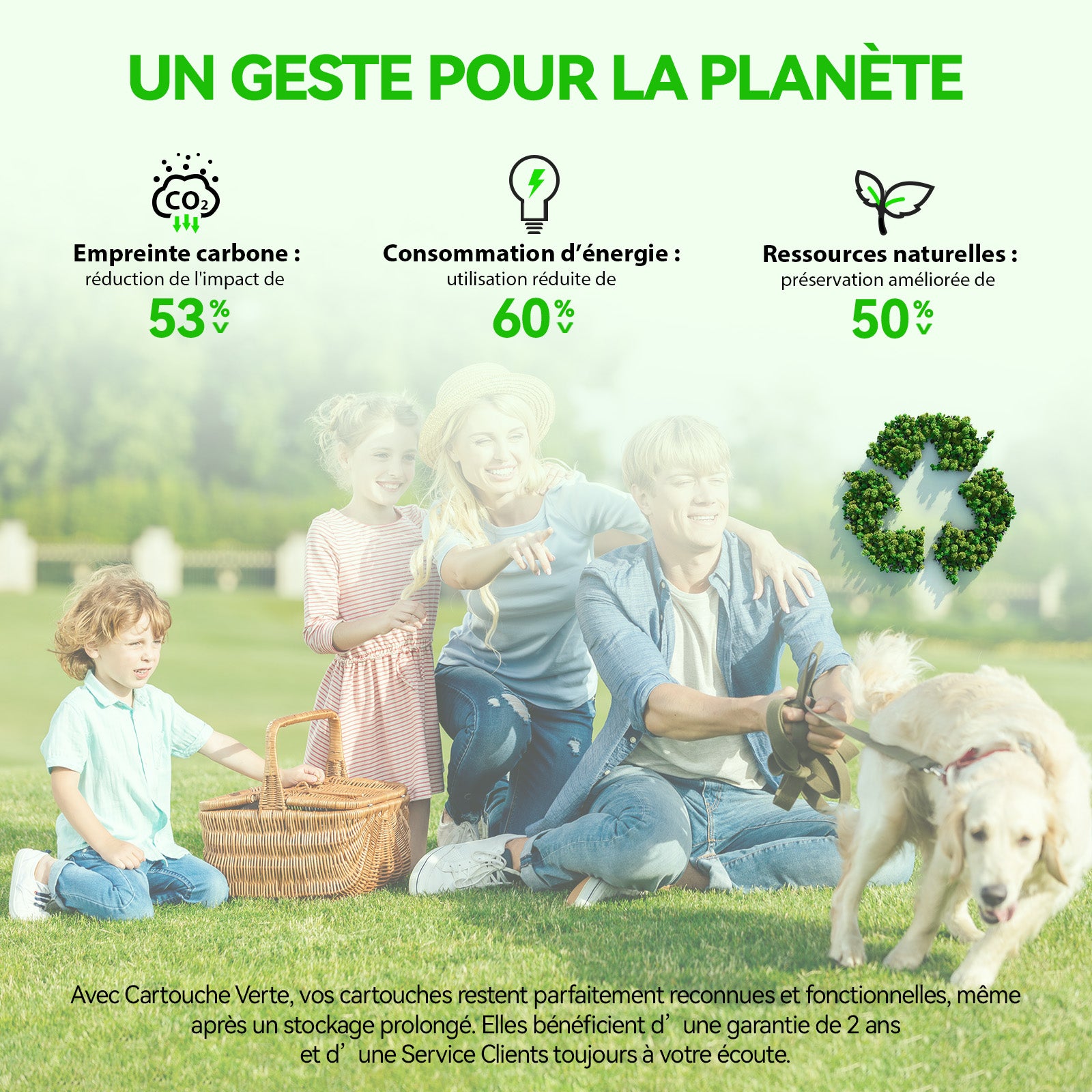 Empty ink cartridges can be recycled. You will receive a T-envelope in your package to return your cartridges. Our partner in France (RSE360) cleans and refills them. Request new T-envelopes: info@cartoucheverte.fr You can also place them in recycling bins in supermarkets.